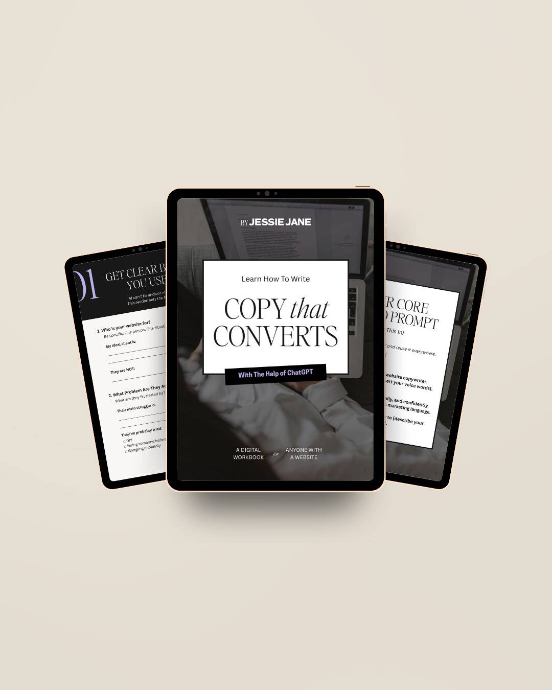 A step-by-step digital workbook that helps you write clear, confident website copy using ChatGPT (without sounding generic!). Designed from a brand and website strategy perspective, it helps you position yourself correctly, speak directly to your target audience, and convert website visitors into paying customers.